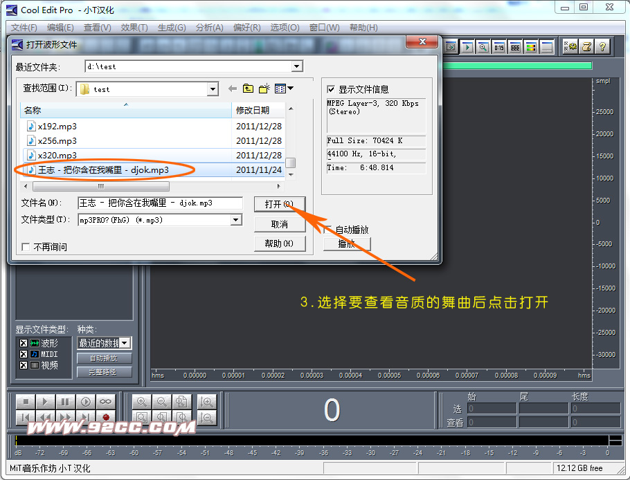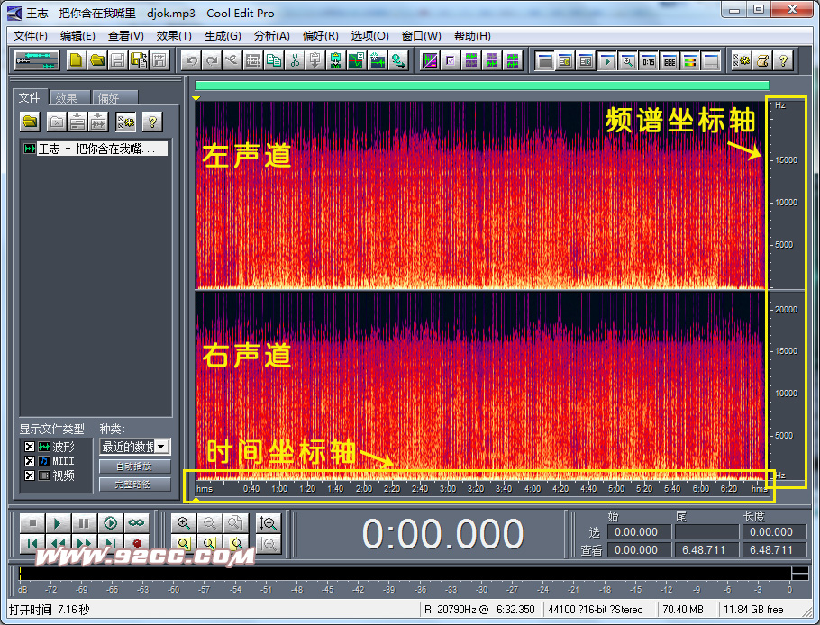 长期以来,很多人对于一首音乐音质好坏的判断完全取决于舞曲的比特率,即查看舞曲是192K、256K还是320K。但实际上这一参数并不能真实的反映一首音乐的音质。相信你也会有这样的感觉,就是一首音乐明明是320K的,但听着音质怎么那么差。根本原因就是它是一首假高音质音乐,因为只要用千千静听等软件,就可以把一首64K的音乐转为320K的,但转换前的和转换后的试听上音质是一样的。那有没有什么方法查看到舞曲的真实音质呢?答案是肯定的,下在我就教大家使用 Cool Edit Pro v2.1 中文版 这款软件来查看音乐的真实音质。